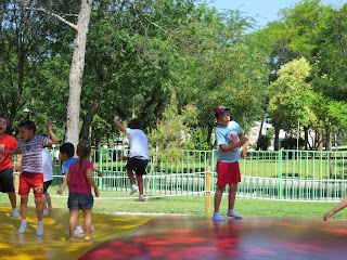 ¡Era el momento mas deseado! Pues la lluvia había interrumpido la anterior visita a este precioso parque de juegos.